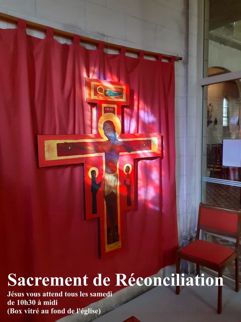 Tous les samedis de 10h30 à midi (box vitré à l’entrée de l’Eglise), ou sur RV (nd.sc@yahoo.com), un prêtre vous accueille pour vous donner le pardon de Dieu.